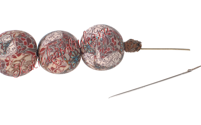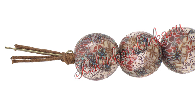 Плотно собираем бусины на шнурах и как можно ближе к бусине затягиваем все шнуры одним узлом, внутри этого узла крепим штифт.