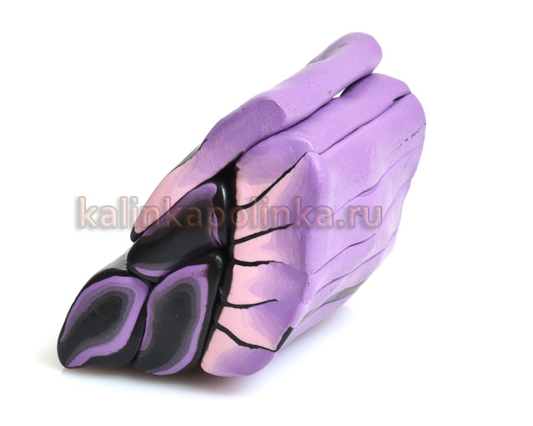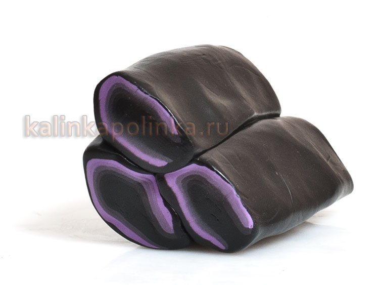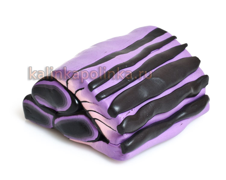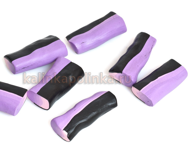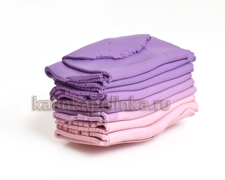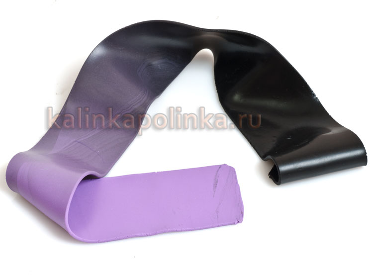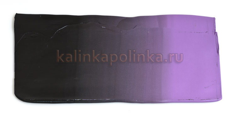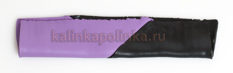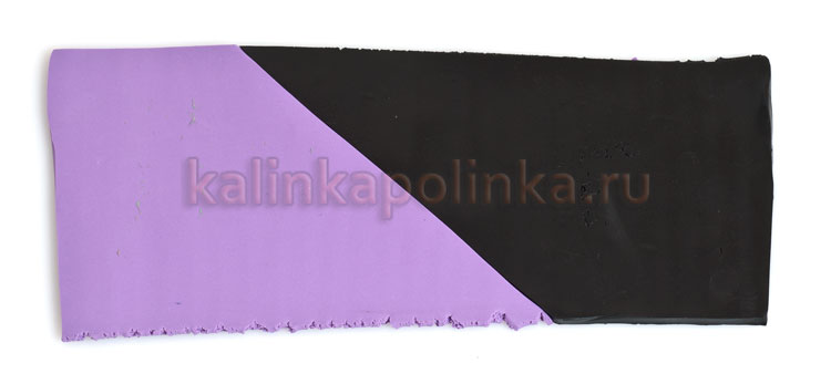 Сначала нам нужно сделать плавный переход цвета. Для этого мы берем два кусочка полимерной глины, раскатываем и вырезаем в виде трапеции, приклеиваем их друг к другу.