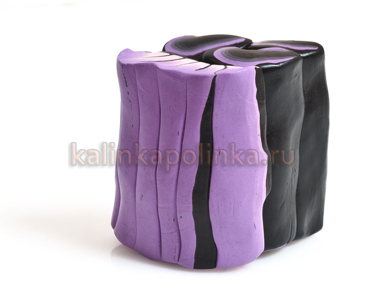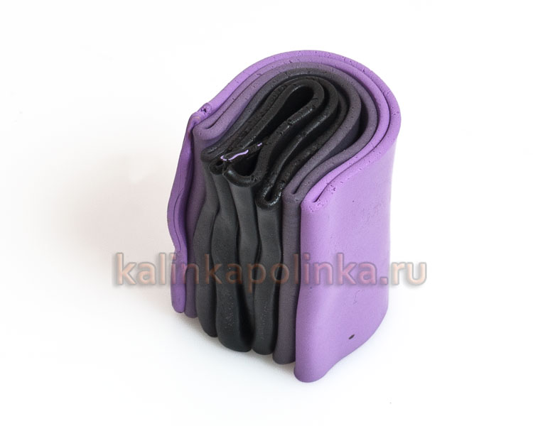 После этого складываем их пополам. Черный к черному, фиолетовый к фиолетовому.