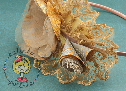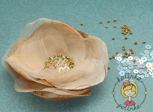 второй ряд лепестков из органзы и фатина, а третий опять из ткани: