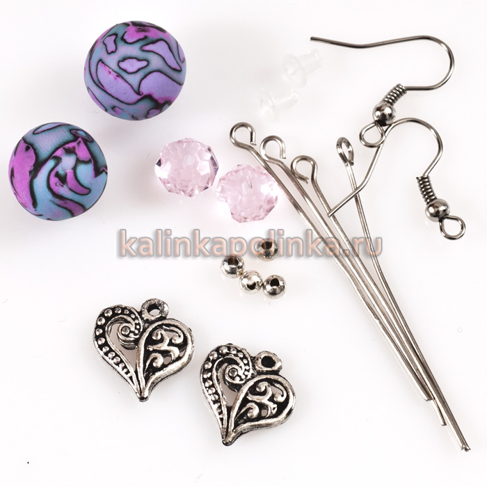 В наличии: парочка бусин абстрактных, стеклянные бусинки в тон 2 шт., металлические шарики 4 шт, пины с ушком 4 шт, подвесочки 2 шт., швензы 1 пара.