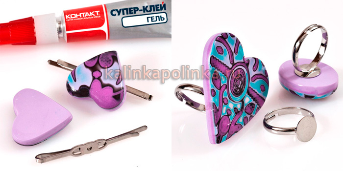 Теперь можно немного расслабиться «Изделия из глины на основах». Заколки-сестрам, колечки-племянницам. Требуются только плоские заготовки, основы (для кольца, невидимки, пуссет, сережек) и клей.
