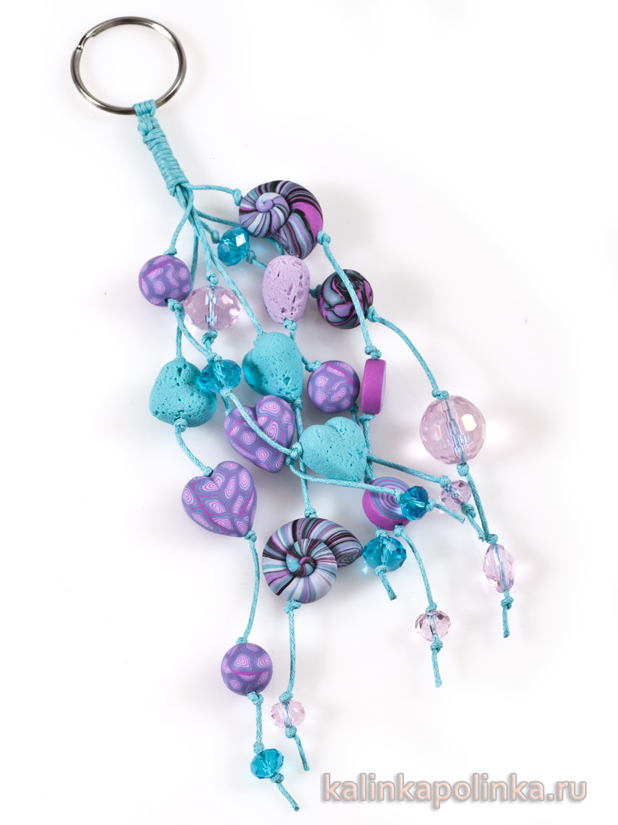 Полезные заметки: Бусинки для брелков лучше всего лакировать, даже в несколько слоев. Полимерная глина достаточно маркая без покрытия. Моя Полина, например, может извести ведро бусин за полчаса, если их оставить наедине, хотя и лак в этом случае не супер-защита . Колечко на брелочках лучше всего поджимать посильнее сразу, пока новое, чтоб не потерять бусинку в первый же день, все же брелки не сережки, нагрузка на них поболее будет.