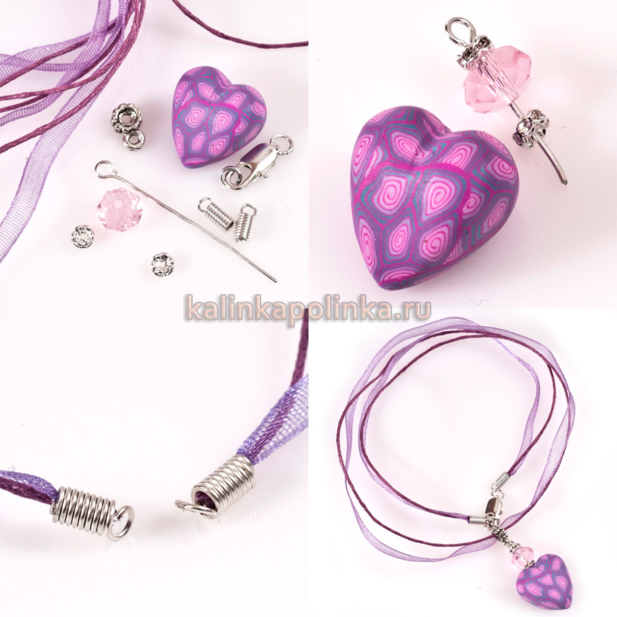 Надеваем на пин рондели и бусинки. Вклеиваем в отверстие в полимерной бусинке. Ждем пока хорошо высохнет, потом отгибаем колечко пина, прикрепляем бейл. На шнурок надеваем всю конструкцию. Шнурок вклеиваем в концевичок, загибаем последнее звено пружинки. С той стороны, где звено пружинки отведено в сторону крепим замочек.