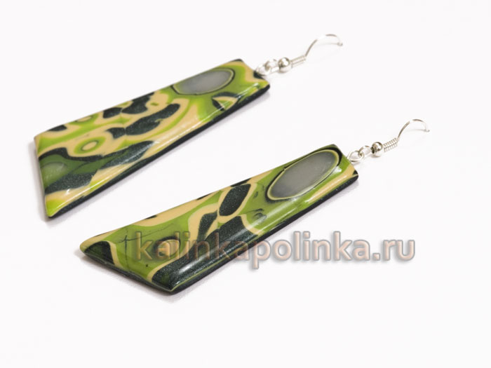 The last thing to do is to drill the holes in clay items, glue in short pins and adjust them to earring hooks. The earrings downwards are made in this technique: