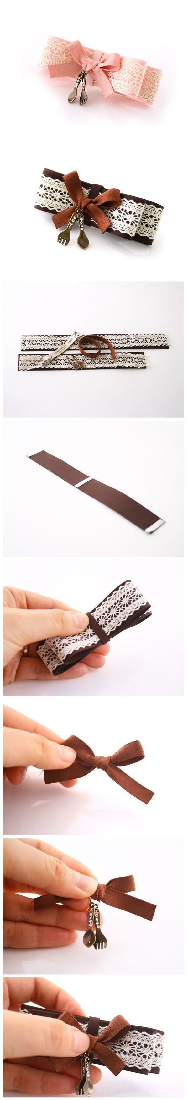 бантик из кусочков органзы. Можно использовать даже обрезки. Хочу обратить внимание, что многие не обжигают края, а проклеивают их клеем, так они выглядят аккуратнее: