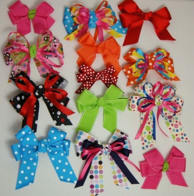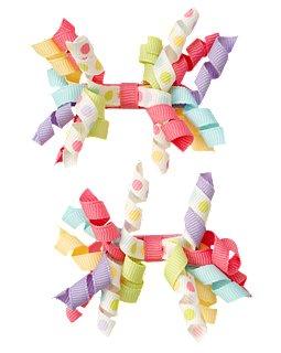 А вот такие банты очень популярны у девочек. Такого эффекта можно добиться, если накрутить ленту на карандаш и запечь в духовке.