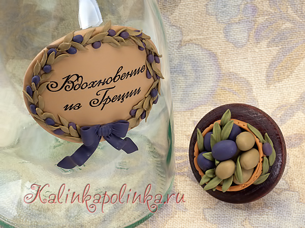 Леплю оливки и листики, сажаю на гель и запекаю. Пробка во время запекания может расширится и треснуть, поэтому я все делаю отдельно, а потом приклеиваю на пробку.