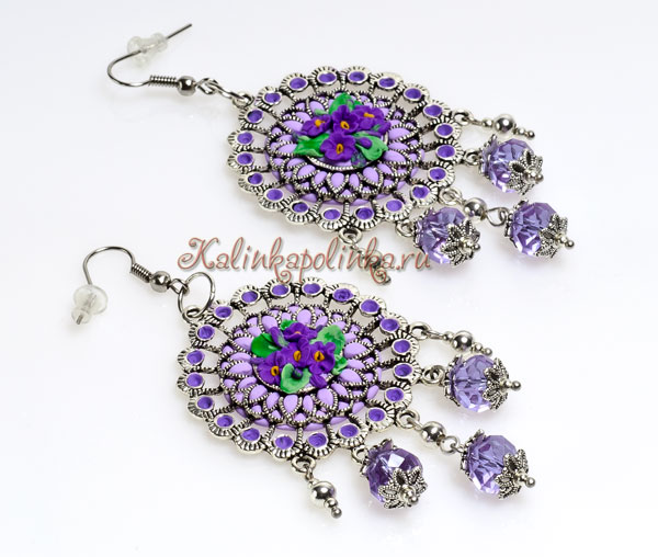 Все готово, собираем все детали в единое целое. На коннекторах есть места для вклеивания страз, у меня страз в таком количестве не оказалось, да я и не очень люблю все блестящее), поэтому я зубочисткой капнула в отверстия акриловой краски (выбирайте хорошую, которая после застывания не растворяется водой)Вместе со швензами на объемных серьгах я рекомендую использовать заглушки, чтобы серьги плотно и аккуратно держались в ушах. Вот такие у нас получились весенние серьги! И хотя у нас на улице зима, так уже хочется тепла, солнышка и первых нежных цветов) Поэтому я подумала-подумала и сделала еще один мастер-класс с цветочками. Смотрите следующую статью.